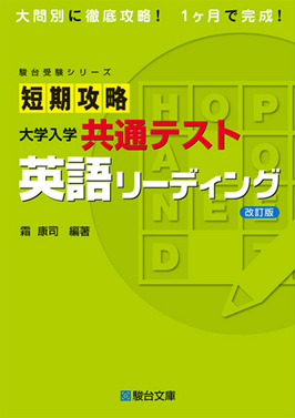 最初の実戦問題集として特におすすめなのが、『短期攻略 大学入学共通テスト 英語リーディング 改訂版』(駿台文庫)です。本書は大問別の構成になっており、例題と練習問題を通して共通テスト独自の出題形式に慣れることができます。「図表の読み取り」「複数資料の照合」など、設問ごとのアプローチ方法を整理しながら学べる点が特長です。基礎から実戦への橋渡しとして最適な一冊といえるでしょう。