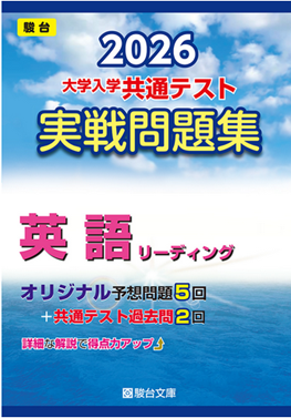 解き方の感覚がつかめてきたら、次のステップとして『大学入学共通テスト実戦問題集 英語リーディング』(駿台文庫)に取り組みましょう。本書には、共通テストの過去問に加えて駿台オリジナルの実戦問題5回分が収録されています。最新傾向を踏まえた構成になっており、出題形式や語数、テーマ設定まで本番に近い形で演習できます。巻末には「共通テスト攻略のポイント」や「直前チェック総整理」も掲載されており、知識整理と最終確認にも役立ちます。