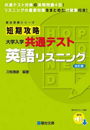 最初の一冊としておすすめなのが『短期攻略 大学入学共通テスト 英語リスニング 改訂版』(駿台文庫)です。共通テストの出題傾向に即したオリジナル問題に加え、頻出表現や聞き取りのポイントを詳しく解説。音源は「通し音声」と「設問別音声」の両方をダウンロードでき、苦手箇所をピンポイントで復習できます。