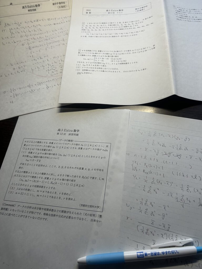 共通テスト・二次試験直前はそれぞれの過去問をひたすら解きました。科目にもよりますが、10~20年分は解いたと思います。また駿台の冬期直前講習や駿台模試の広島大プレなどを積極的に活用しました。共通テストの3週間前に新型コロナウイルスに罹患してしまい、勉強に遅れが出たので体調管理については反省しています。