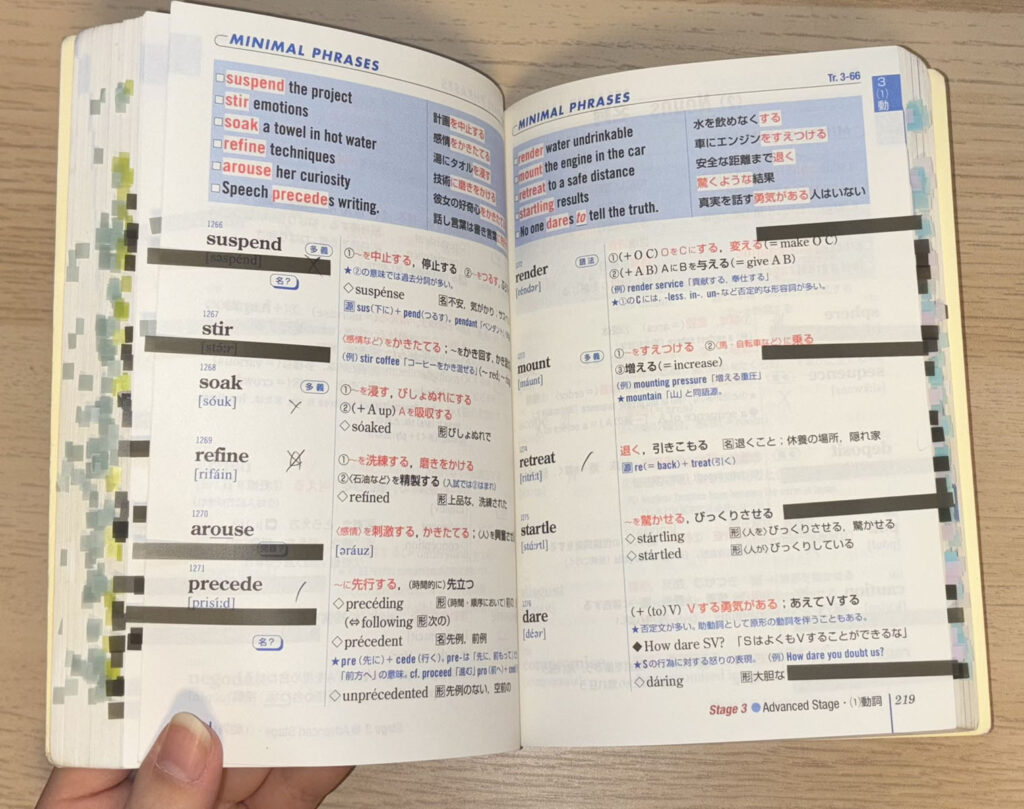 いろいろな勉強に手を出すのではなく、参考書は1教科につき1冊にしていました。個別試験の直前は過去問、英単語帳、古文単語帳しか使っていませんでした。勉強の進みが目に見えるようにしたかったので、単語帳や参考書の覚えておきたいところに付箋を貼っていました。本番前には、そこを重点的に見直していました。