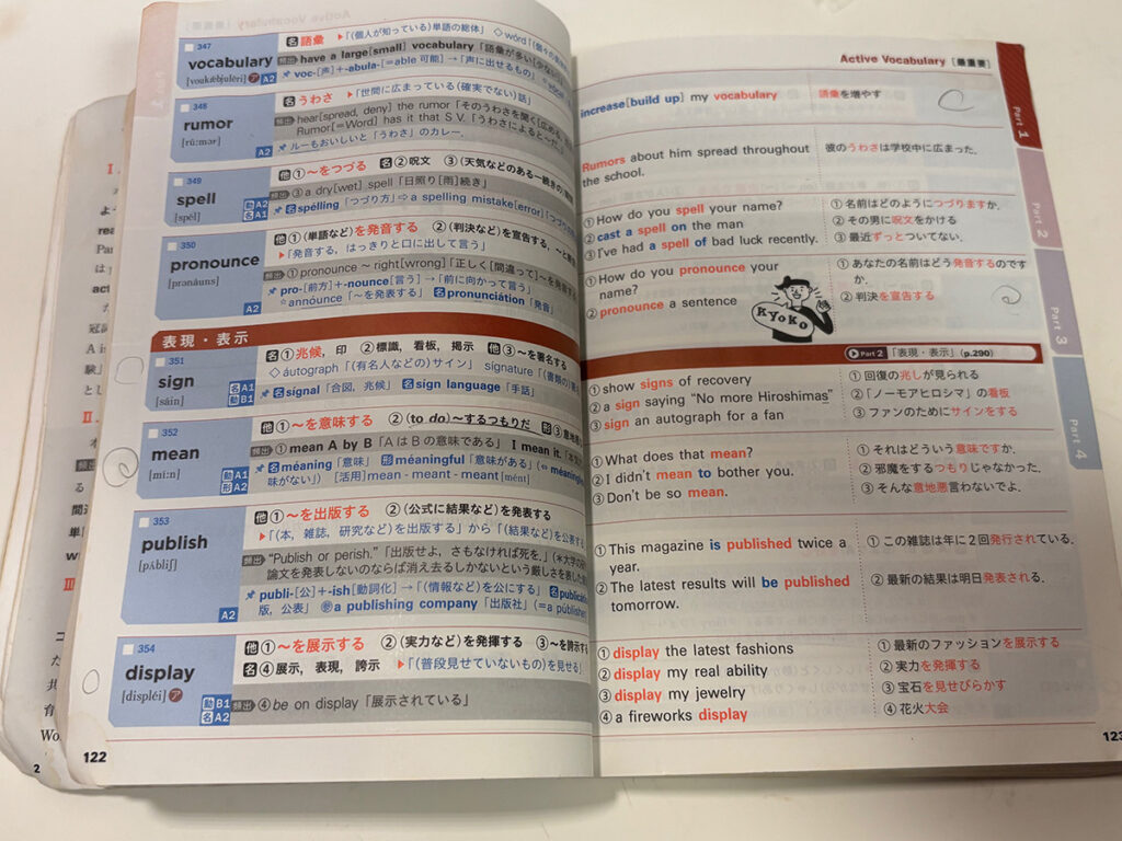授業中は知らないことが多く出てくるため、それらを素早くメモに取り、あとで復習していました。単語帳の使い方も工夫をして、付箋を使うのではなく、直接単語帳に印をつけていました。そして印の濃さを変えることで自分がどれだけその単語を間違えたのかを、視覚的に把握できるようにしていました。