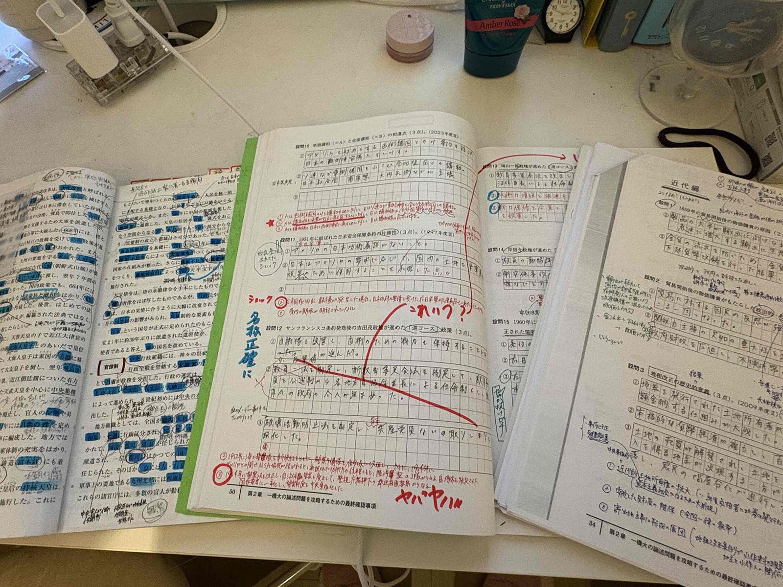 共通テスト前は、過去問を自分の苦手度と配点から優先順位をつけて取り組むとともに、パック5回分を年末年始にかけて本番同様の時間、本番にできるだけ近い環境(駿台の開放自習室など)で緊張感を持って取り組みました。また、苦手な大問があったらその大問だけを過去問から引っ張り出してきて集中的に攻略していました。もちろん毎回理想的な点数が取れるなんてことはなかったし、不安に押しつぶされそうな時もあったけれど、過去の自分のノートにある努力の痕跡を見て、心を落ち着かせていました。
