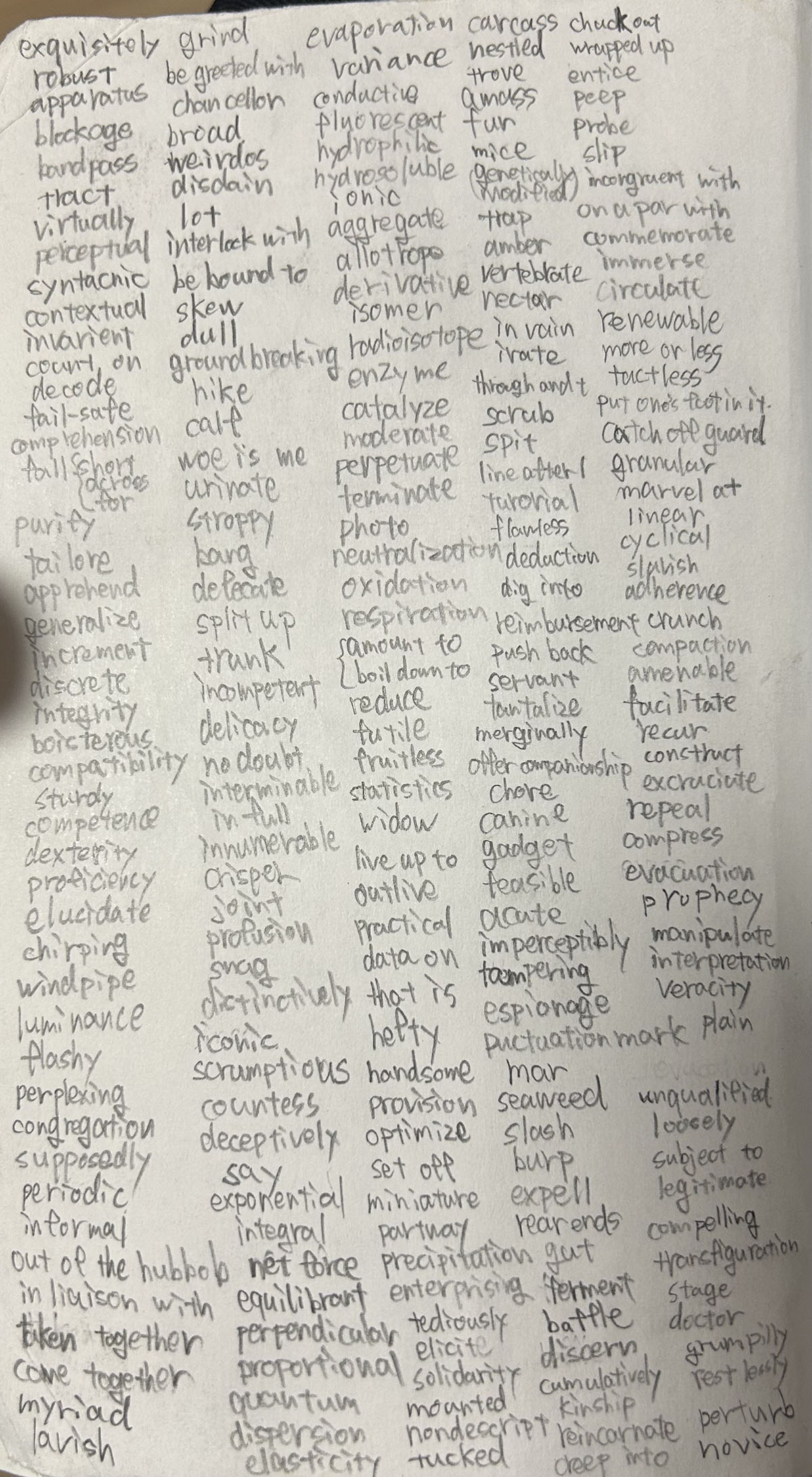 自分は横浜国立大学と同じ希望順位で、早稲田大学と慶應義塾大学の理工学部を志望していました。特に早稲田大学の理工学部を受験するにあたって英語が鬼門だと感じていたので、単語帳の空きスペースに過去十年分以上の問題を解いた中で知らなかった、科学用語などを書き留めていました。通常の単語帳に載っていないようなものばかりでしたが、取り組む時にはそれも一緒に暗記していました。
